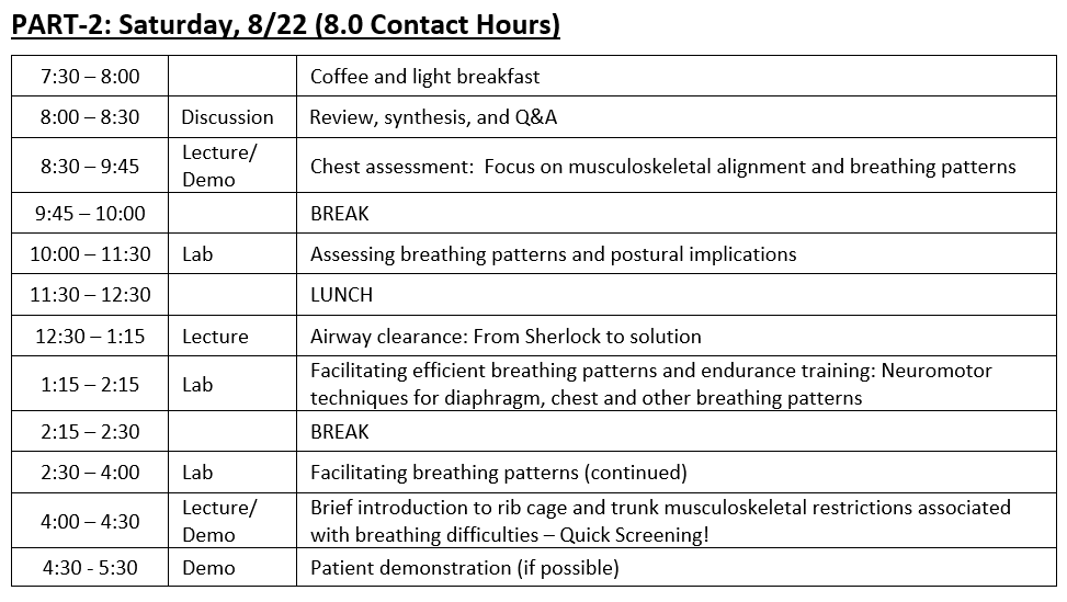 - Identify thoracic cage/spine restrictions as they pertain to breathing mechanics and postural control (a very brief introduction of chest wall restrictions).