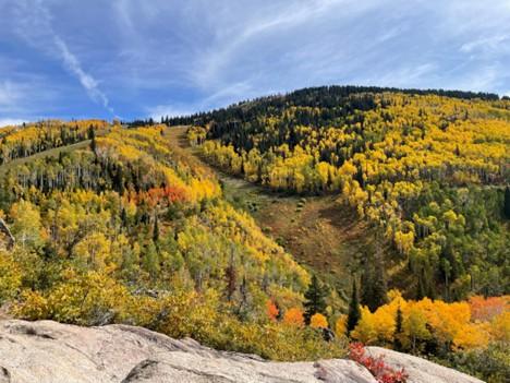 - Highlights: mature aspen groves with panoramic mountain views and option to hike clockwise or counterclockwise