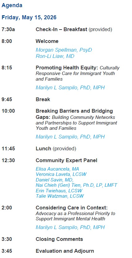 Please join us for the 2026 Rosenberry Conference at Children's Hospital Colorado on Friday, May 15th 2026 (7:30AM-4:00PM), committed to advancing behavioral health equity for immigrant youth and families.